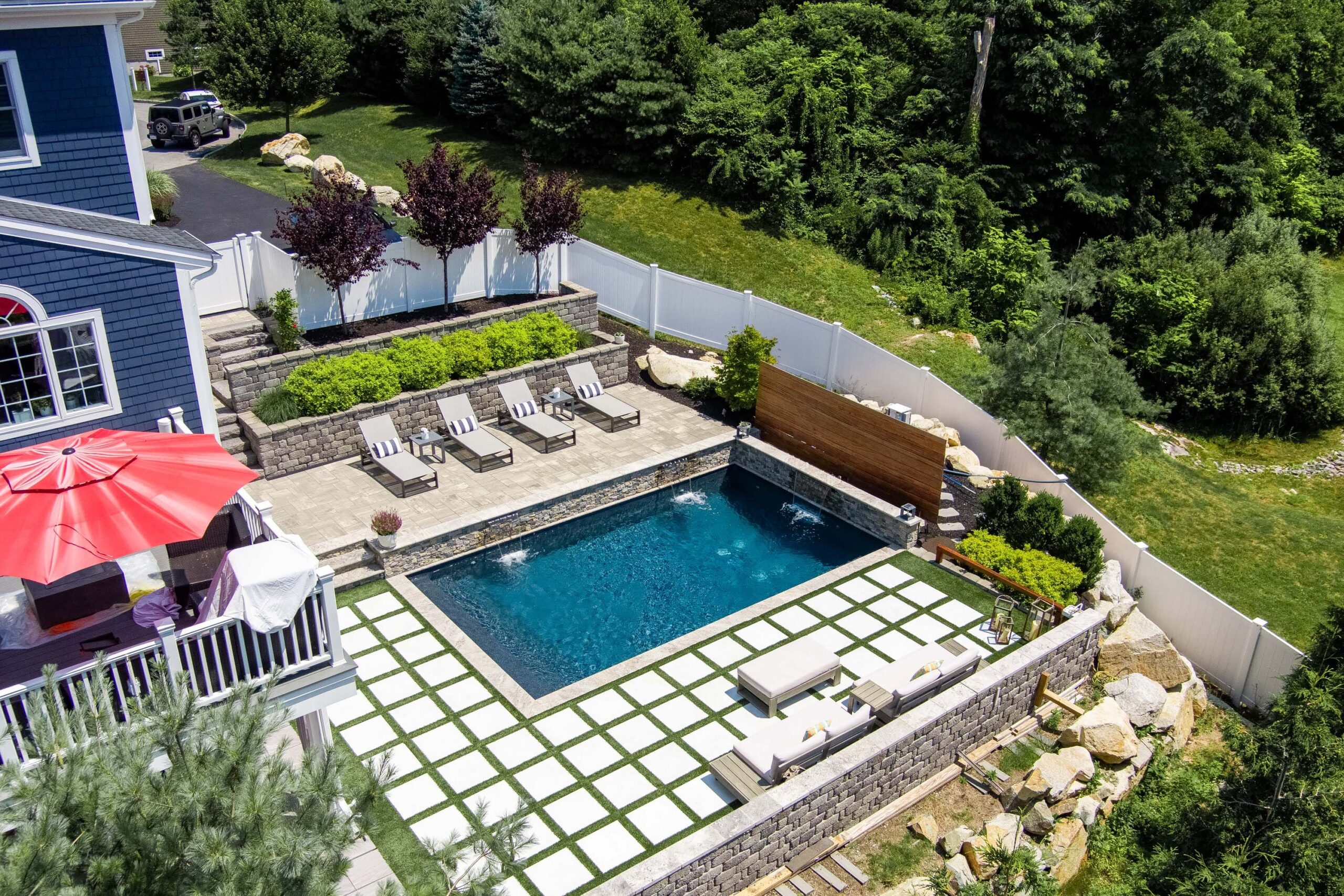 Gunite allows for a wide range of custom shapes, sizes, and features, making it ideal for unique designs and incorporating custom additions like waterfalls or vanishing edges. Increased